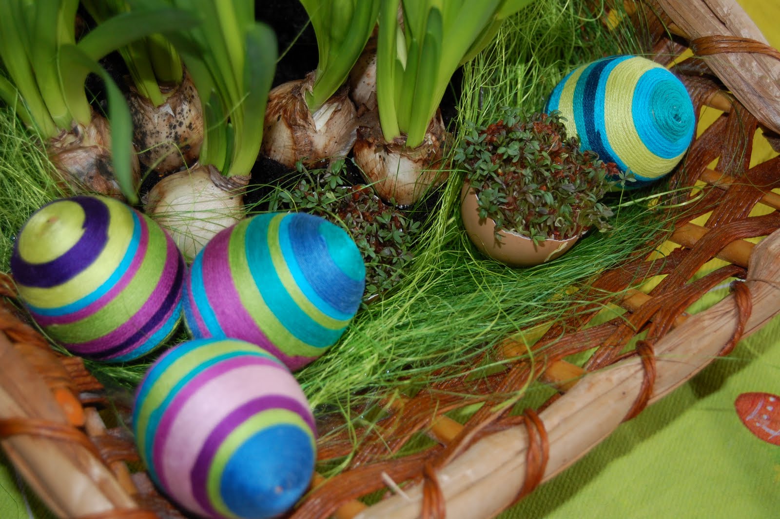 Domowa namiastka wiosennego ogrodu z żonkilami i swiąteczną rzeżuchą wychodowaną w skorupkach jajek. Jak to stwierdzil mój Najdroższy " fajne, tylko szkoda koszyka, bo się zniszczy " :-( Ta.....